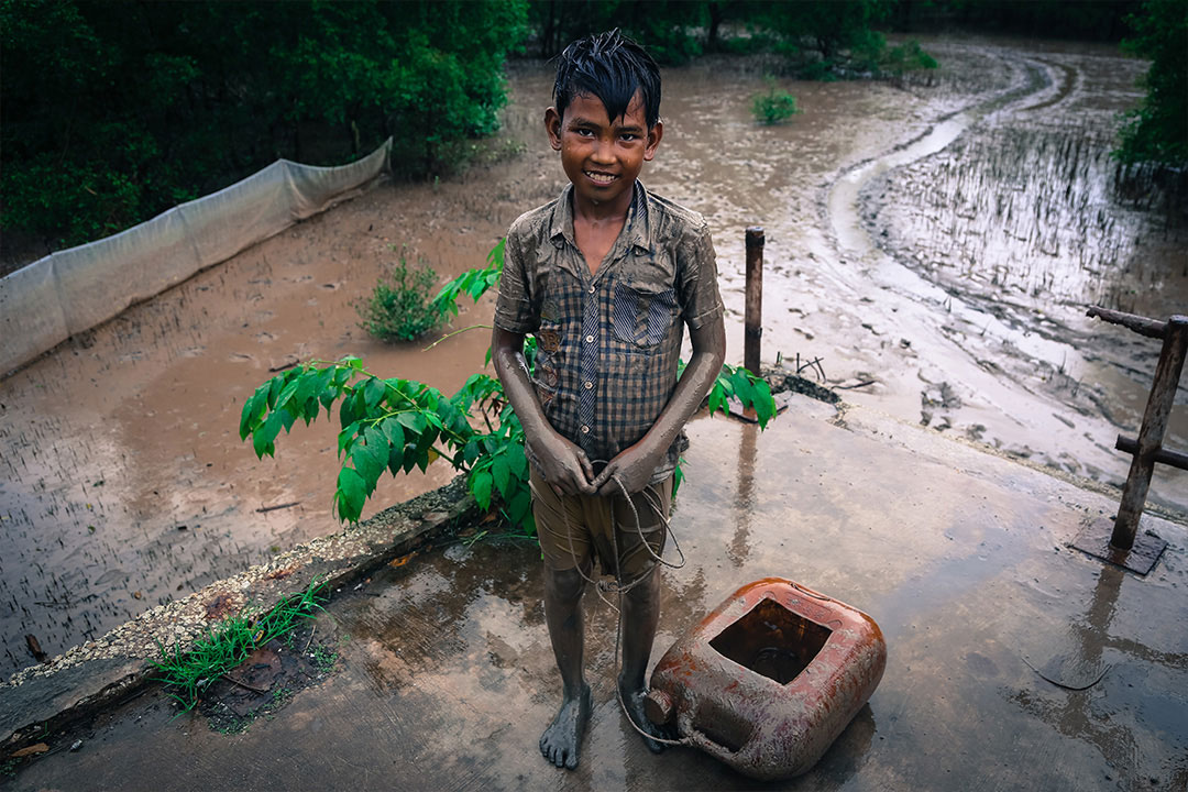There are no men or young adults here. The group that eagerly gathers to speak with us is composed of grandmothers and young children. They tell us “the loss of water is the biggest suffering.” During the drought there was no fresh water here—none for the people, animals, or crops. The government supplied drinking water for two months, but then the trucks stopped and they were forced to rely on privateers selling bottled water at vastly inflated prices. The river was too salty even to wash their clothes in.